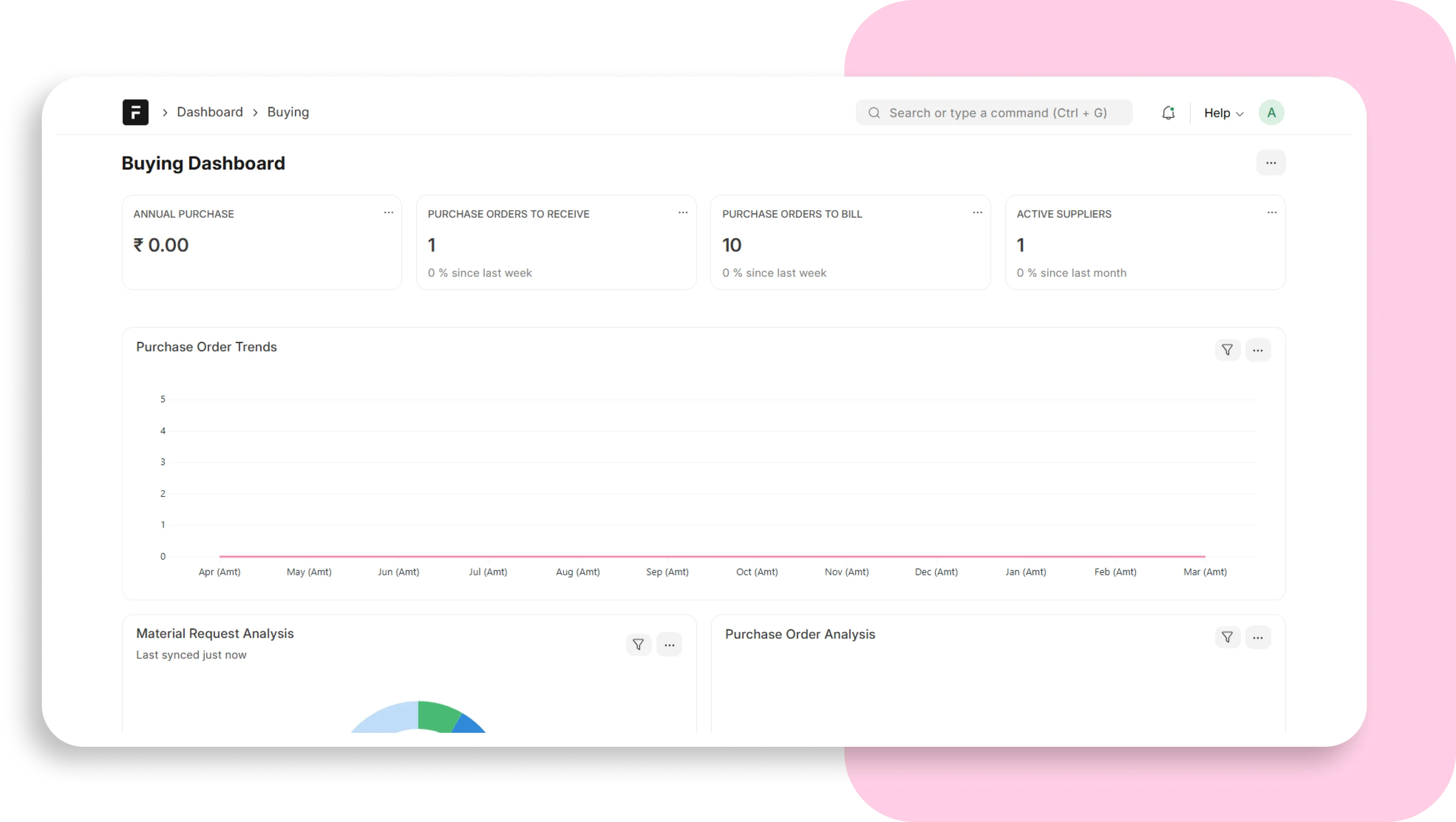 The system allows vendor creation, purchase order management, GRNs, and analytics for better procurement decisions.